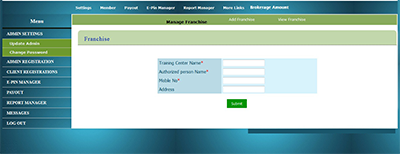 Franchise management ( Add franchise , view franchise)