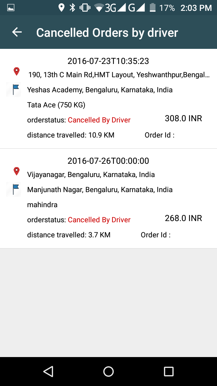 Customer can view their current order details , completed order details, pending order details, cancelled orders by driver , canceled orders by customers. In provided menu.